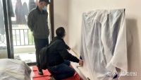 由于精装房墙面和地面已全部装修完毕,而明装暖气片在施工过程中会不可避免地有灰尘等。为了防止家具和地面因施工而被弄脏,所以师傅们在施工前都会把房屋地面铺一层保护膜,避免此类问题出现。