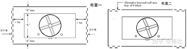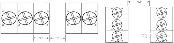 进风面相对,其间距M的最小值应满足算式:M=2d+连台台数×0.3m。