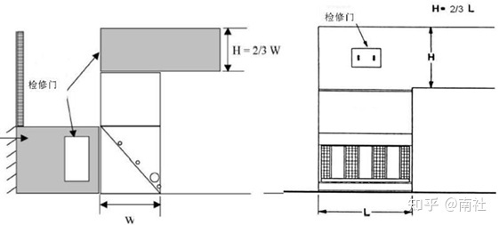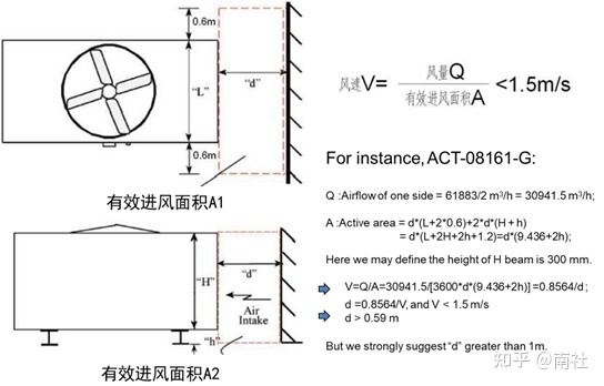 保证进风面与墙之间留有足够的距离,下降风速应该小于2m/s。