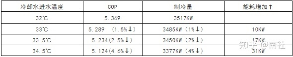 冷却水进水温度对机组能效比的影响: