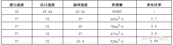 冷却塔容量变化不同湿球温度下: