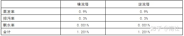 横流塔漂水率<0.001%,逆流塔<0.001%,补水率=蒸发率+排污率+漂水率。