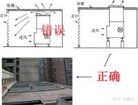 建议:增加进风面离墙距离,实体墙改为百叶墙。