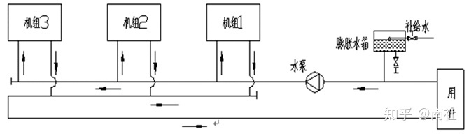 6、采用密闭回路式水系统时机组回水处应设置膨胀水箱,以缓冲因水体积的膨胀或收缩现象以及隔离补给水压对水配管的影响。