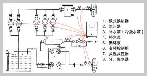 换热站就像一个变压器那样把一次网的高温余热转换成二次网的日常使用热水,再供给用户。电厂首先通过管道将高温热水或者蒸汽输送到换热站,换热站再通过过滤器除污后,通过二次侧循环水泵进入板式换热器进行热交换,产生出不同温度的热水(如暖气片、地暖等所需的热水),以满足不同用户的需求。