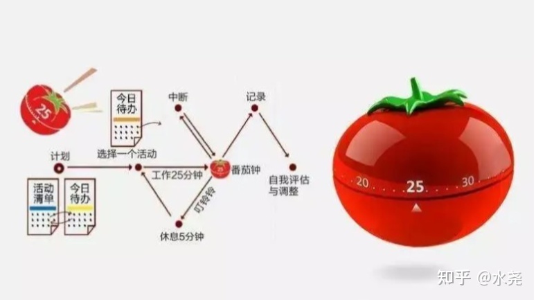 番茄工作法,也有说“番茄钟”,是弗朗西斯科.西里洛于1992年创立的一种简单易行的时间管理方法。原理极其简单:工作25分钟(算做一个番茄时间),休息5分钟。每4个番茄时间后休息时间增加为15分钟,以此循环合适的工作周期。
