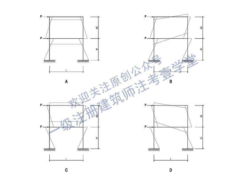有外力时,柱子上端外侧受拉,下端内侧受拉