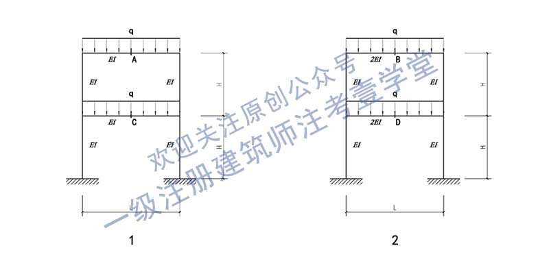 图示两结构因梁的高宽不同而造成抗弯刚度不同,梁跨中弯矩最大的位置是( )
