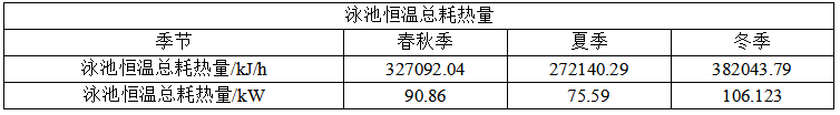 泳池恒温小时耗热量:春秋季91kW,夏季76kW,冬季107kW。