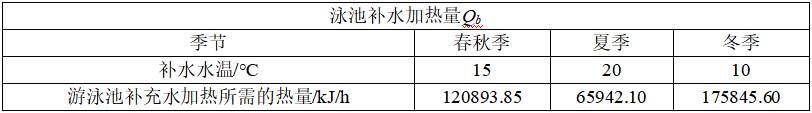 (3)泳池补水加热所需的热量计算: