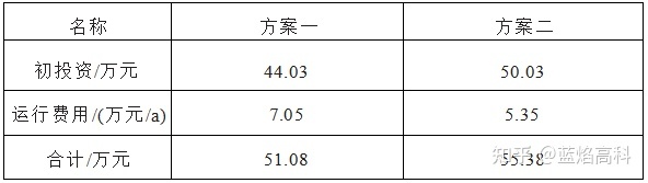 分析2个方案初投资及运行费用,结果如表2所示