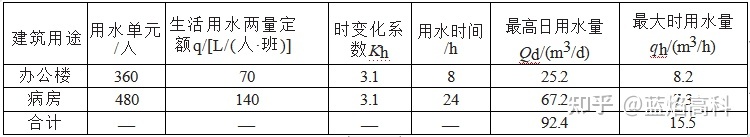 根据《建筑给水排水设计标准》(GB50015—2019)要求,病房楼需设置全日制集中生活热水供应系统,供水温度为60℃。在竖向将热水系统分为高区和低区,高区为7~11层,低区为1~6层,均设置为上行下给双管全循环形式。生活热水用水量如表1所示。
