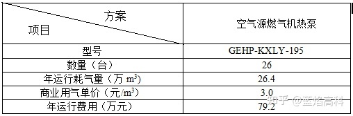 方案选型结果,蓝焰高科GEHP-KXLY-195型空气源燃气机热泵机组26台。