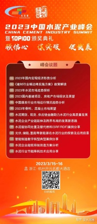 3月15-16日,中国水泥网将在杭州举办“2023中国水泥产业峰会”,届时全国水泥及相关行业同仁将共聚一堂,探讨未来水泥市场走势,敬请关注。
