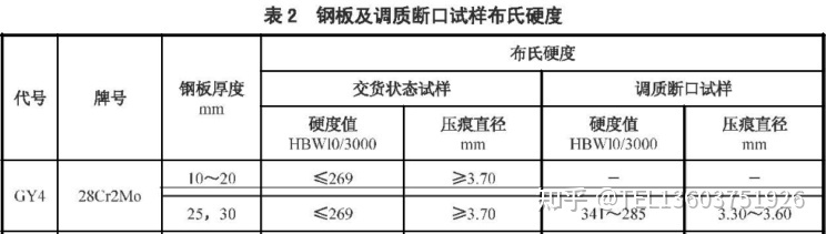 高温回火状态或热轧状态的钢板及调质断口试样的布氏硬度应符合表2的规定。