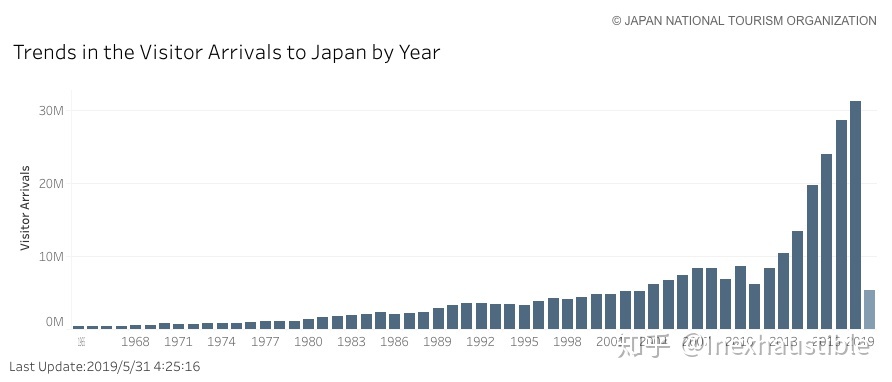 到日本旅游外国人数(数据来源:日本观光统计局)