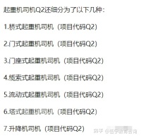 另外,需要注意的是,虽然起重机统称Q2,但是只考取了其中一项作业证,是不能操作其他种类的,每种起重机司机证是不通用的,这个一定要分清楚再进行对应的报考。