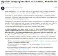 不仅如此,尽管卖家们努力维系和提高IPI分数,但是亚马逊的评判准则似乎也有些阴晴不定,不少卖家IPI达标而库容更新时容量仅出现小幅度增加,甚至不升反降,大大影响到产品的及时补货和上架。