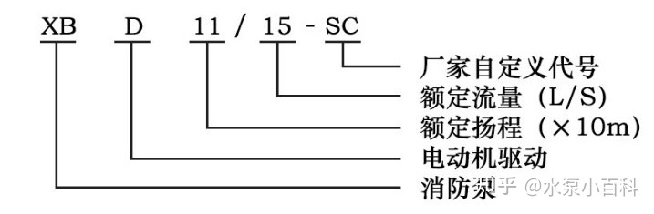 消防泵的型号不同,所表示的消防泵字母含义也会有所不同。消防泵常用的型号有XBD消防切线泵、XBD卧式消防泵、XBD-L立式消防泵以及XBD-L立式多级消防泵。举例:消防泵型号是XBD3.2/25-100W-160,其中XBD字母表示为消防泵组代号,3.2表示为压力(1/10MPa),25表示为流量(L/S),100表示为泵吸入口直径(mm),W字母表示为卧式结构,160表示为叶轮名义外径(mm)。