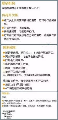 操动机构室位于环网柜正面,在每个功能回路中,负荷开关配有人力(或电动)储能弹簧操动机构,接地开关配有人力储能弹簧操动机构,面板上有分别用于负荷开关合闸操作和手动分闸旋转钮及接地开关的分、合闸操作孔,负荷开关分、合闸位置指示灯和电动分、合闸按钮,并设有模拟线、开关状态显示牌及加锁位置,负荷开关和接地开关的操作具有联锁装置,以防止误操作。