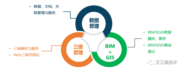 EIM包括数据管理、三维管理、BIM+GIS管理三大板块: