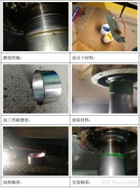 根据现场情况与企业领导讨论现场修复方案,最终确定利用高分子材料结合耐磨套的修复工艺,高分子材料修复磨损的沟槽和恢复磨损的轴径。加工内径160,外径170的耐磨套,更换170--190-15的骨架油封进行装配。