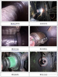 结合设备损坏情况,最终决定采用福世蓝具有专利的“模具定位法修复磨损轴的装置”工艺实施修复。由于模具修复能够很好的保证工件的同心度以及快速现场修复的优点,并且便于施工,工艺易于操作,修复效果能够确保开机运转质量。