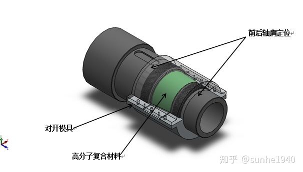 6.t调和适量2211F高分子材料,涂抹至轴承位表面及模具内表面;。