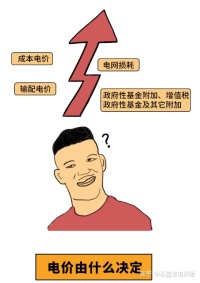 人们的用电价格由几部分构成:成本电价(上网电价)、输配电价、电网损耗、政府性基金附加、增值税政府性基金及其它附加费。