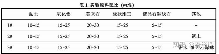 莫来石质隔热耐火砖主要是通过在材料内部造孔的方法来达到轻质、隔热的效果,因此其制备原理就是向材料中引入气孔,主要有燃尽物法、泡沫法、化学反应法、多孔材料法、凝胶注模法、冷冻干燥法、原位分解法等常见方法。其中燃尽物法又可因成型方式的不同而分为挤出法和机压法。以不同的制备工艺对莫来石质隔热耐火砖的性能具有重要影响,为了探索不同工艺对莫来石质隔热耐火砖的影响,实验分别以机压法、挤出法和泡沫法三种方式制备莫来石质隔耐火热砖,并对其性能做了对比。