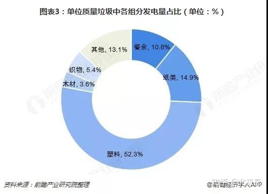 值得注意的是,虽然餐余垃圾在生活垃圾中占比非常高,但由于热值较低,其单位质量垃圾中发电量占比中仅仅达到10.8%。生活垃圾中热值较高的为塑料、纸类和织物等,尤其是塑料,在生活垃圾中质量占比仅为12.1%,然而贡献了发电量的52.3%。因此,目前垃圾种类繁多,回收利用效用不对等,垃圾分类就变得异常重要。我国有部分城市已经开始了垃圾分类的试点,实行干湿分离。餐厨垃圾的分类收集将减少生活垃圾中餐厨垃圾的占比,生活垃圾的发电量有望提高。