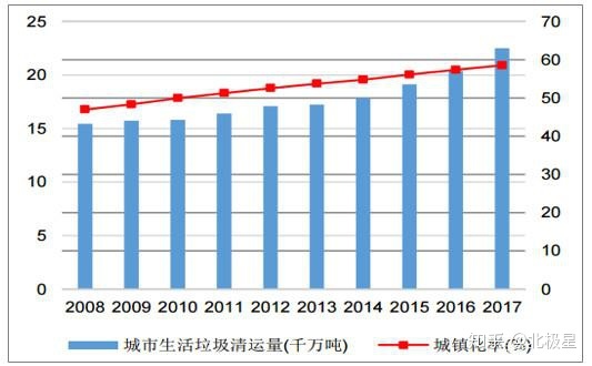 全国城市生活垃圾清运量及城镇化率变动情况