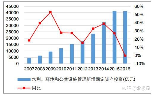 全国水利、环境和公共设施新增投资及其增长率