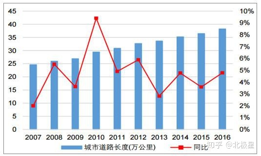 全国城市道路长度及其增长率变动情况