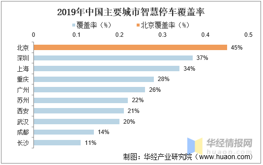 中国正加快道路智能化设施建设,智慧停车行业将因下游需求爆发而迎来高速增长。根据数据显示,2020年城市级停车项目总计1.007项,项目类型以设备类为主,为588项,其次是停车场经营权转让类项目,为164项。城市级项目具备大体量特点,其中城市级机械车库招标项目金额的中位数为4.000万元,所以下游强需求将带动智慧停车行业发展。2019年,北上广深智慧停车平均覆盖率仅为35%,远未能使停车位达国际车位理想比例1:1.3,未来仍有较大的增长空间。