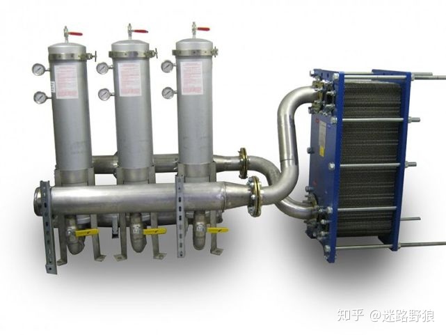 4、板式换热器旁通管:当冷热介质流量比较大时,可在大流量一侧板式换热器进出口之间设旁通管,减少进入板式换热器流量,降低阻力。