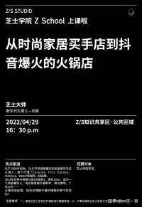 “芝士学院Z School”是由Z/S STUDIO发起的专注设计、文化创意、生活方式与实战经营等领域的知识分享平台,定期邀请具有独到见解和丰富实践经验的文化创意界的资深从业者和意见领袖担任嘉宾,用一块块小小的高浓缩“芝士粒”,带来现下最热门最实用的“知识力”。