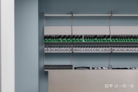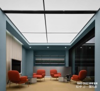 在空间上,则是以蓝色、绿色、橘色、灰色、银色进行搭配,并辅以不同材质的地面铺装、天地墙、软隔断,营造复古未来的空间氛围。
