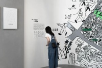 在玉林地图的展陈设计上,我们与插画艺术家nichinichi合作,创作了一张地图插画,并手绘到一面墙上,这种设计让地图的阅读变得有趣,不少观众因此对这张地图产生了浓厚的兴趣。