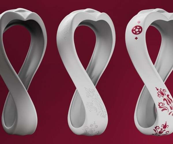 徽标立体转动时呈现一个曼妙的数字8,表示卡塔尔举办世界杯比赛的体育场馆数量。它也可以解释为无限符号∞,代表各国对这项运动的团结。