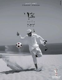 在图的左上角,为一个足球图标代表锦标赛的运动。右下角的花卉图案让人联想到传统阿拉伯陶器、纺织品,甚至是中东男士佩戴的头巾“ghitra”上的花卉图案。