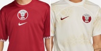 作为东道主的卡塔尔主场球衣设计风格简洁,以栗红色为主,球衣中心位置有独特的徽标设计,袖口细节灵感则是来自于卡塔尔国旗。