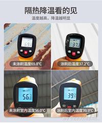 涂料在羊舍棚顶,涂层涂刷 0.2~0.5mm 厚,在暴晒天气,棚顶表面温度可从70度降低到35度左右,棚内能降低10度左右,水性反射隔热降温涂料干燥时间快,涂膜物化性能好,安全、无毒、环保、自洁性好、涂层附着力强,涂层不起皮、不开裂、持久防色变,使用年限长达15年以上,有的甚至与建筑使用年限一样长。