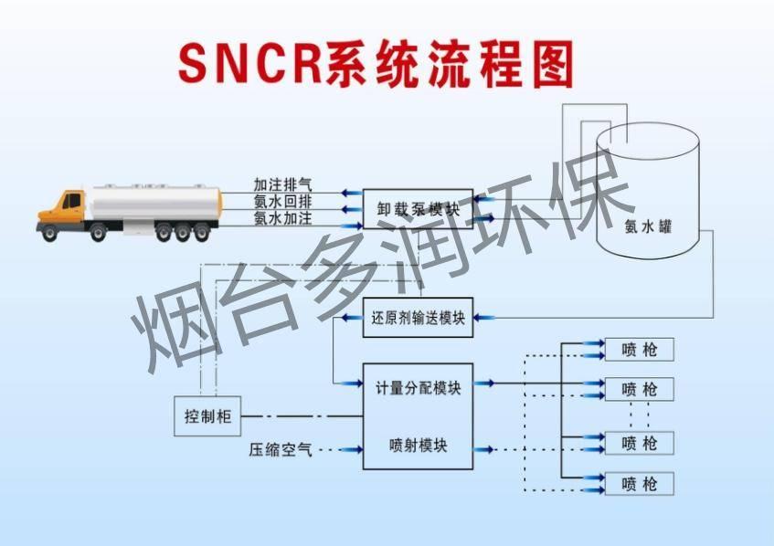 选择性非催化还原技术是一种无需催化剂的脱硝技术,其主要通过在炉膛内喷射还原剂(如尿素、氨水等),使还原剂与NOx发生化学反应,将其还原为氮气。SNCR技术具有投资成本低、操作简便等优点,适用于中小型燃煤锅炉和某些特殊场合。