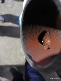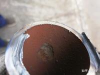 ▲上图为山东某公司锅炉氧腐蚀,炉管上氧化铁垢下腐蚀坑造成穿孔泄漏爆管,看到了那个腐蚀坑穿孔吗?