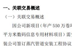 金昌股份与关联方龙游锅炉设备安装公司签订蒸汽管道安装工程协议 预计发生额不超过500万
