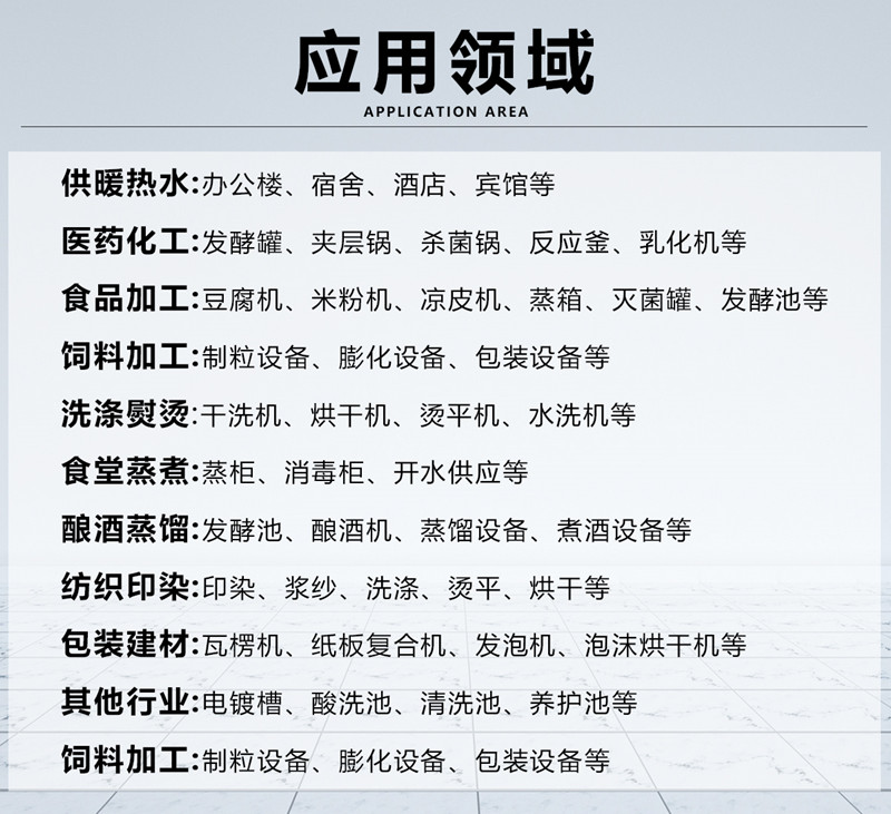 医院,学校,酒店宾馆,食堂餐厅,食品饮料行业,酒厂,洗浴中心,小区居民楼取暖,实验室