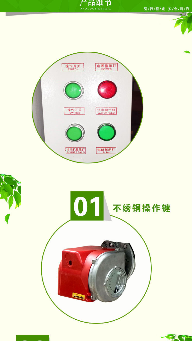 产品适用范围:用于制衣、食品、木材加工、洗涤洗碗、种植养殖、电子电缆、包装机械、水泥养护、化工、科研单位、洗衣房、宾馆、学校等企事业单位的生产及生活用汽