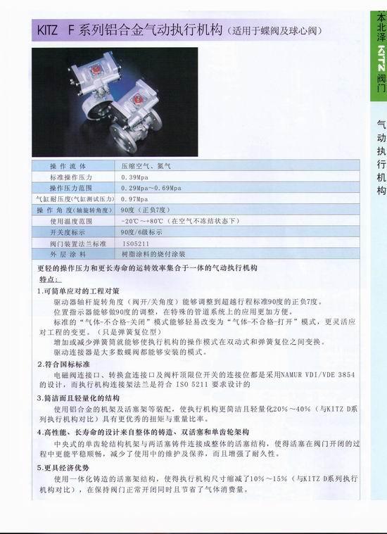 在过去的日子里,我们已经成长为具有世界领先水平的管类生产厂商。今天,KITZ商标由于其卓越的品质在日本乃至全世界享有很高的声誉。进口.日本北泽KITZ气动球阀:气动内螺纹球阀是由双(单)作用气动活塞式执行器和内螺纹球阀组成。其阀体可分为整体式、二段式、三段式。阀座采用弹性密封结构,密封可靠,启闭轻松。阀杆采用有倒密封的下装式结构,阀腔异常升压时,阀杆不会被冲击。气动活塞式执行器采用低摩擦材料做成轴承套,缸体内外表面经硬质阳极氧化防腐处理,大大提高了气缸的使用寿命。本产品使用性能稳定,广泛的用于石化、冶金、电力、轻工、医药等工业部门