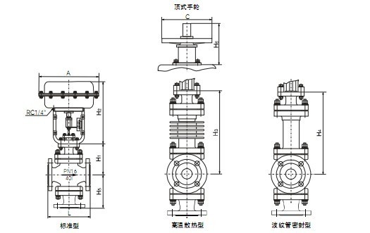 气动三通调节阀 主要外形尺寸公称通径DN 253240506580100125150200250300LPN16/40185200220250275300350410450550640720PN64200210235265295320370440475570670750A285285285285360360360470470470580580H1PN16/40155175180200235250260330350420 PN64165175185205245255270335365430 H2&, amp;, amp;, amp;, lt;, /, P>298298298298380380380510510510 H3PN16/40235247256268364384394465470540 PN64245265268278381390400470485540 H4PN16/40364425430445660680690748740780 PN64364425435450665690700750750795 H5合流PN16/40140150160180200210220260280320474580PN64150170180200220240260300320380474580分流PN16/40—————225245285305350540612PN64—————265285325345410540612C220220220220270270270320320320 H6180180180180236236236310310310 重量(kg)PN16/4028303946758198148188285 PN64323749619298119191222330 注:1、表中重量为不带附件标准型数据,也可安装侧装式手轮。2、阀体法兰及法兰端面距可按用户指定标准制造,如:ANSI,JIS,DIN等标准。